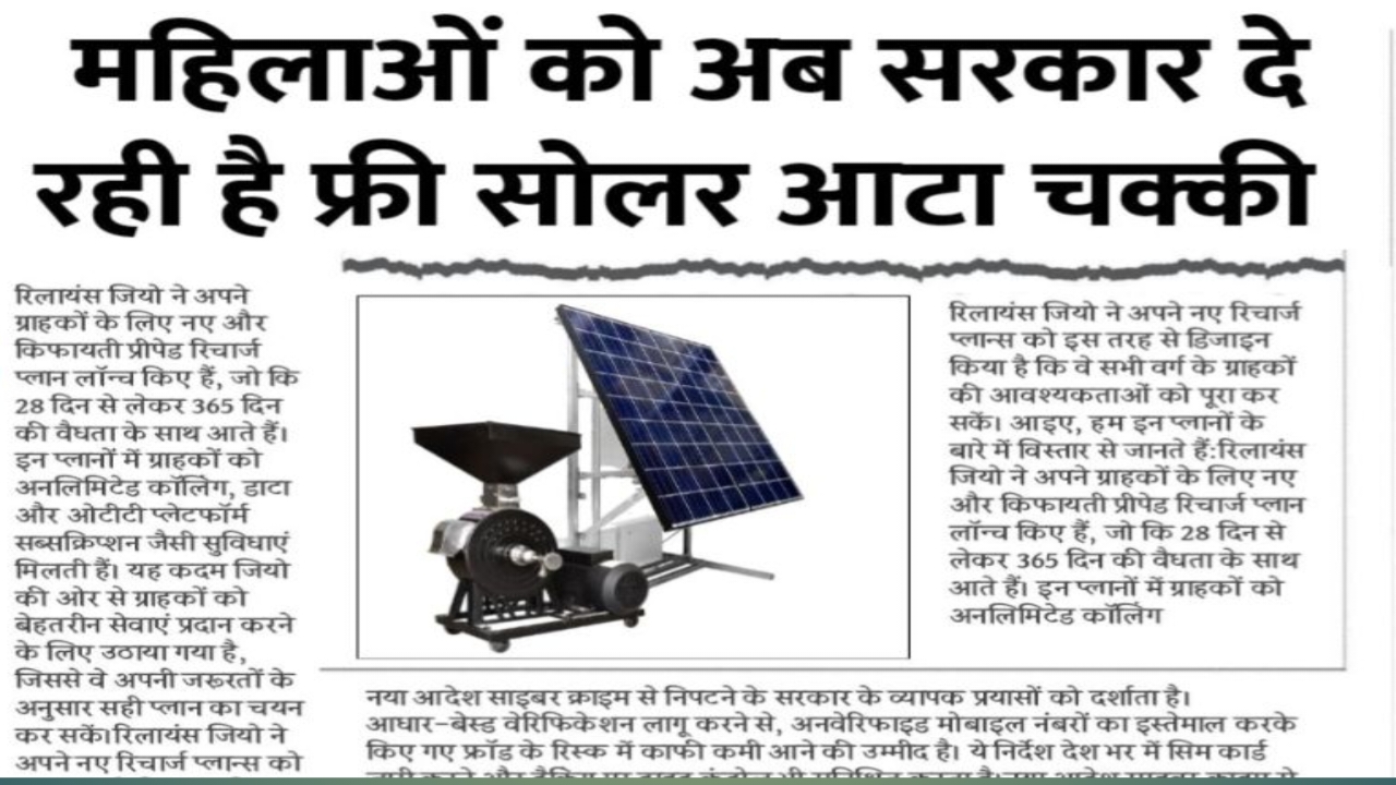 Free Solar Aata Chakki : मुफ्त सोलर आटा चक्की और रोजगार का अवसर मिलेगा सभी महिलाओं को ऐसे आवेदन करे।